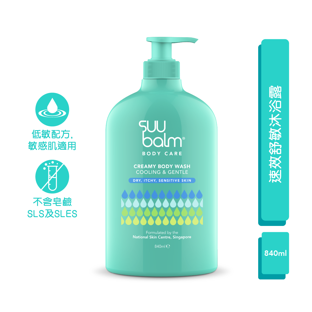 Suu Balm Dual Cooling & Moisturising Cream Body Wash is a gentle, refreshing formulation that’s safe for everyday use on anyone with sensitive and dry skin.
