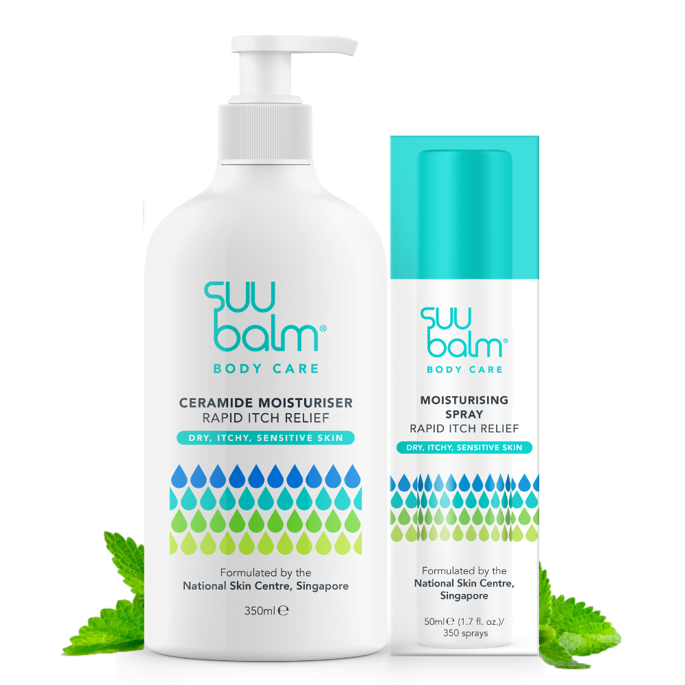 Suu Balm Rapid Itch Relief Moisturiser is formulated with natural cooling menthol to rapidly soothe and relieve itch, along with 5 types of skin-identical ceramides to replenish skin barrier.