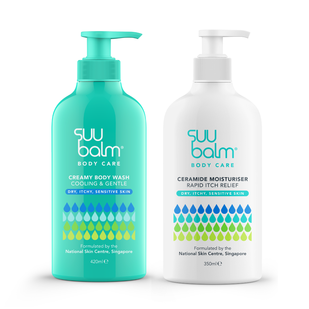 Consisting of our 2 best-selling products for body care, this bundle aims to provide quick soothing relief for dry, itchy, sensitive and eczema-prone skin. Suu Balm Body Wash is 100% soap & sulfate free, contains cooling menthol to soothe sensitive skin. Complement it with the Rapid Itch Relief Moisturiser to relieve itch and moisturise your skin after you shower!