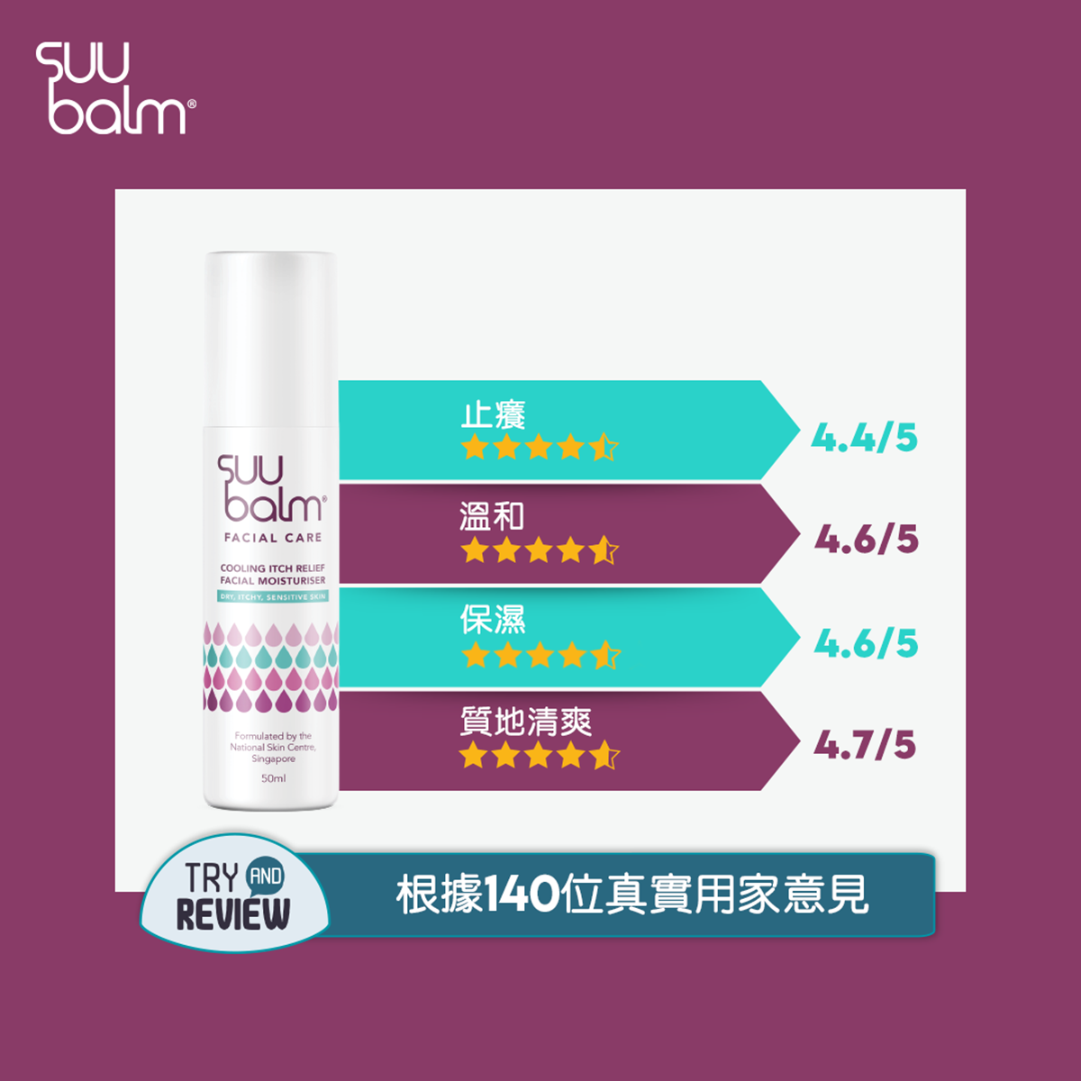 ● 88% of users find that Suu Balm Cooling Itch Relief Facial Moisturiser, is lightweight and easily absorbed into the skin.